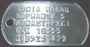 We are the only ones in Athens who print metal embossed tags for every occasion (Dog Tags) Special prices for schools and various events. Tags for: